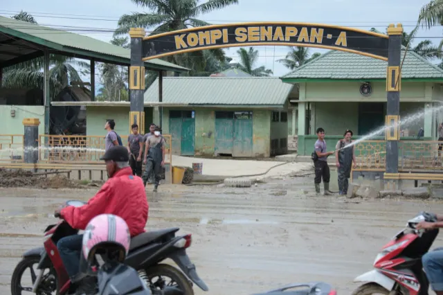 Aceh Tamiang – Hari ini, 26 Desember 2026, Musibah banjir yang melanda Aceh Tamiang Genap satu bulan. Kompi Senapan A Yonif 111 / Karma Bakti, Aceh Tamiang, masih terendam air sisa banjir.