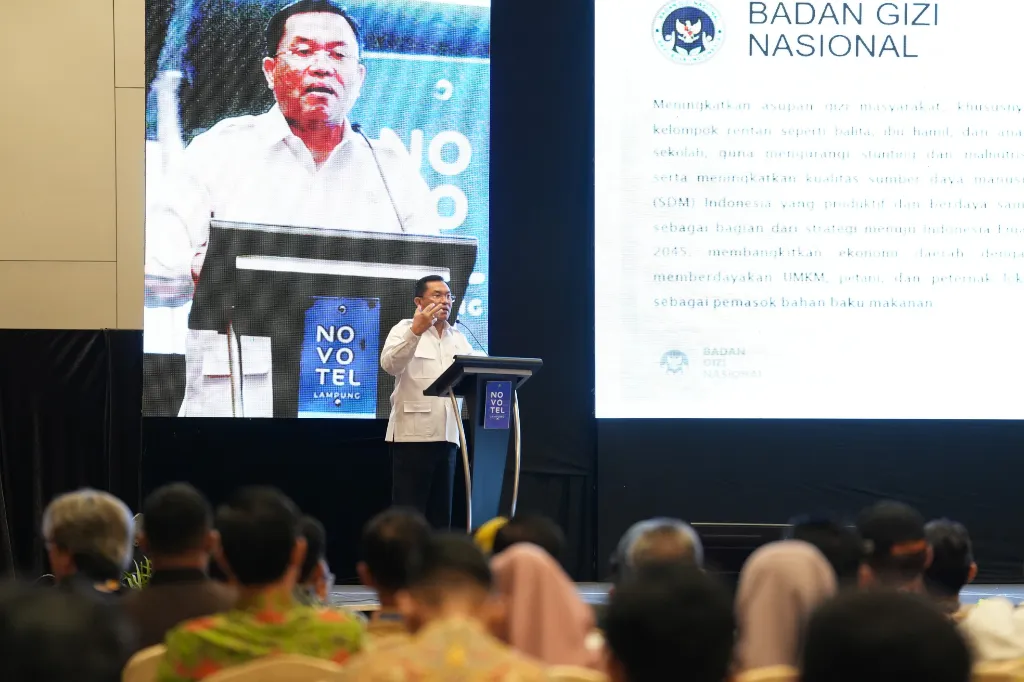 Bandar Lampung — Wakil Kepala Badan Gizi Nasional (BGN), Sony Sonjaya, mengungkapkan bahwa Program Makan Bergizi Gratis (MBG) merupakan program unggulan dari program unggulan pemerintah. Hal tersebut disampaikan dalam Rapat Konsolidasi bersama Kasatpel, Mitra, dan Yayasan di Lampung yang diselenggarakan oleh Kedeputian Pemantauan dan Pengawasan Wilayah I, Sabtu (14/2).