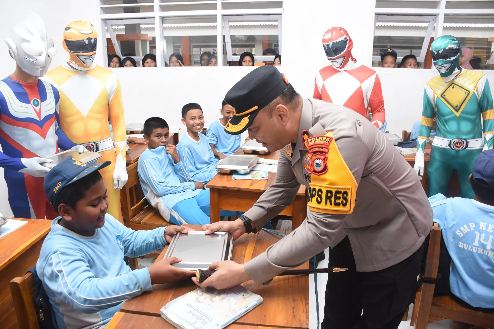 Kunjungan tersebut berlangsung meriah dan penuh antusias dari para siswa-siswi. Dalam kegiatan itu, Kapolres hadir bersama 6 Superhero, Ultaraman dan Power Rangers.