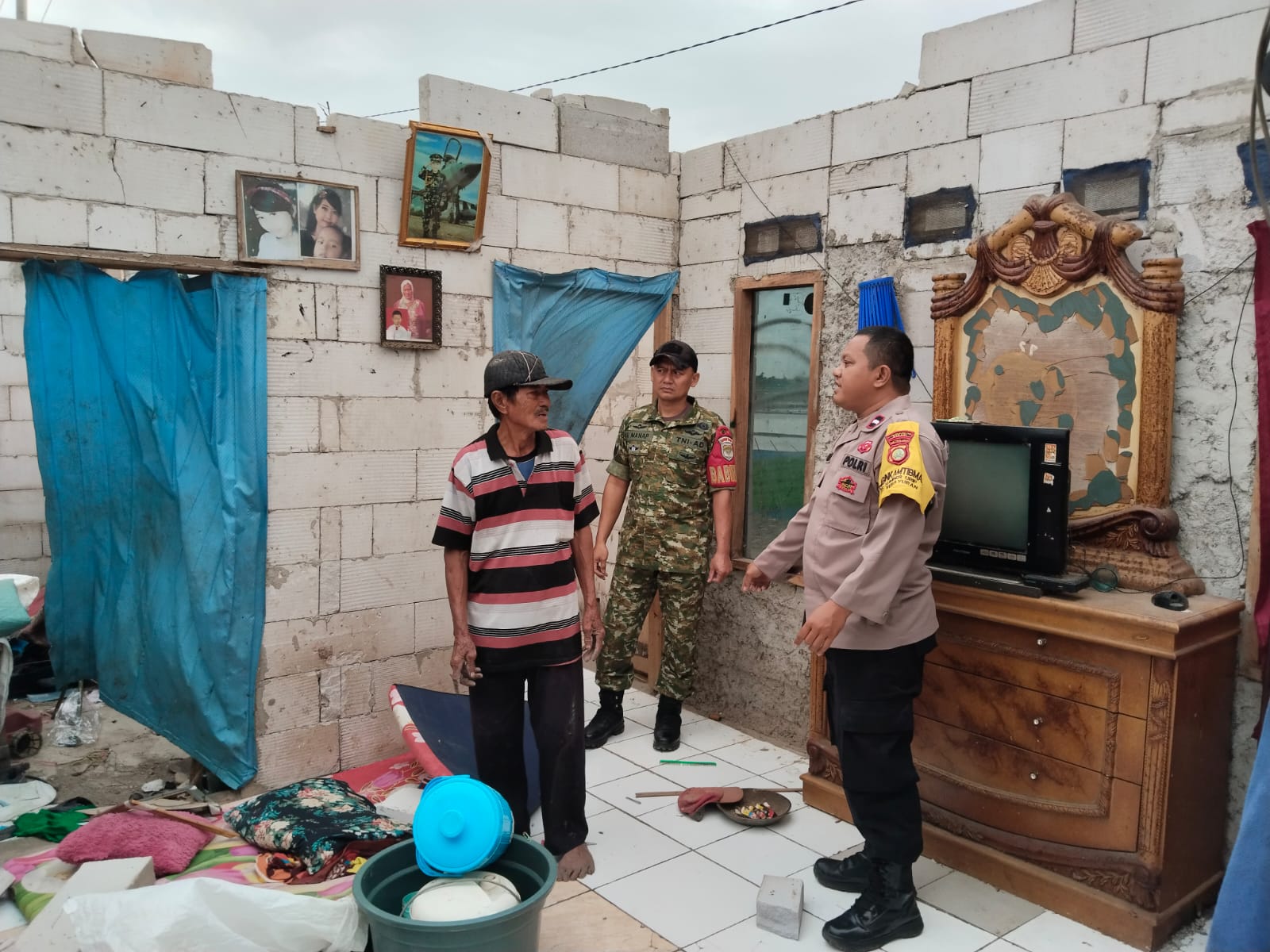 Mendapat laporan tersebut, Babinsa Desa Sumberurip Serka Abdul Manap Koramil 11/Pebayuran dan pihak kepolisian langsung bergerak cepat menuju Tempat Kejadian Perkara (TKP) untuk melakukan pengecekan dan membantu proses pendataan kerusakan.