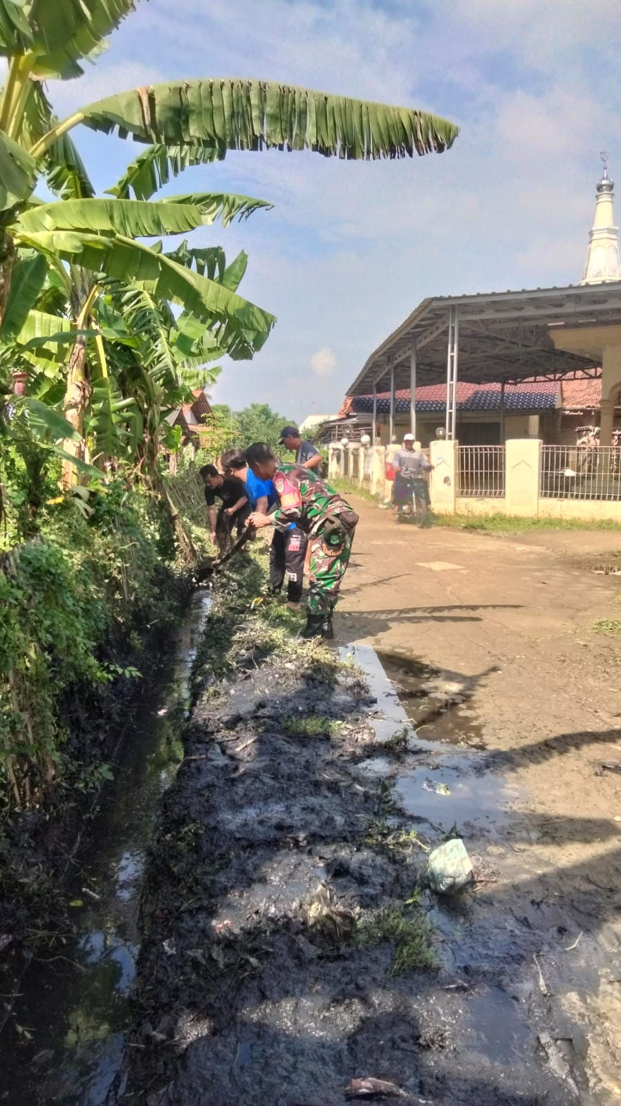 Pebayuran – Menyambut datangnya bulan suci Ramadan, jajaran Koramil 11/Pebayuran bersama warga melaksanakan kerja bakti pembersihan saluran air di Kampung Teluk Haur, RT 01/RW 05, Desa Kertajaya, Kecamatan Pebayuran, Kabupaten Bekasi, Minggu (1/3/2026)