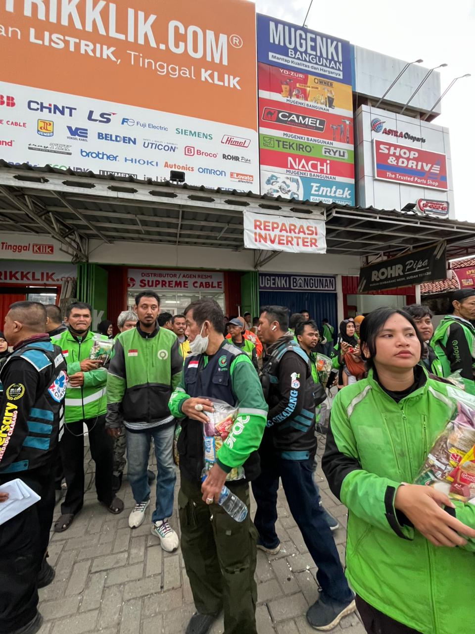 Menariknya, kegiatan ini turut melibatkan pasukan ojek online penyandang disabilitas yang ikut berpartisipasi dalam pendistribusian bantuan kepada warga sekitar.